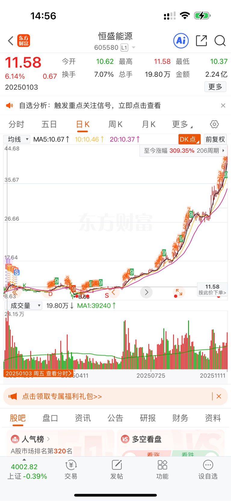 $恒盛能源(SH605580)$ 我有时都在幻想,我要是不动股票,就纯拿着不动,我是不是现在已经翻了300%了,估计也只能幻想下了,没有哪个人能拿住的!看着他还在涨就生气,开始以为里面就是个小私募在搞,现在回过头来看,牛批