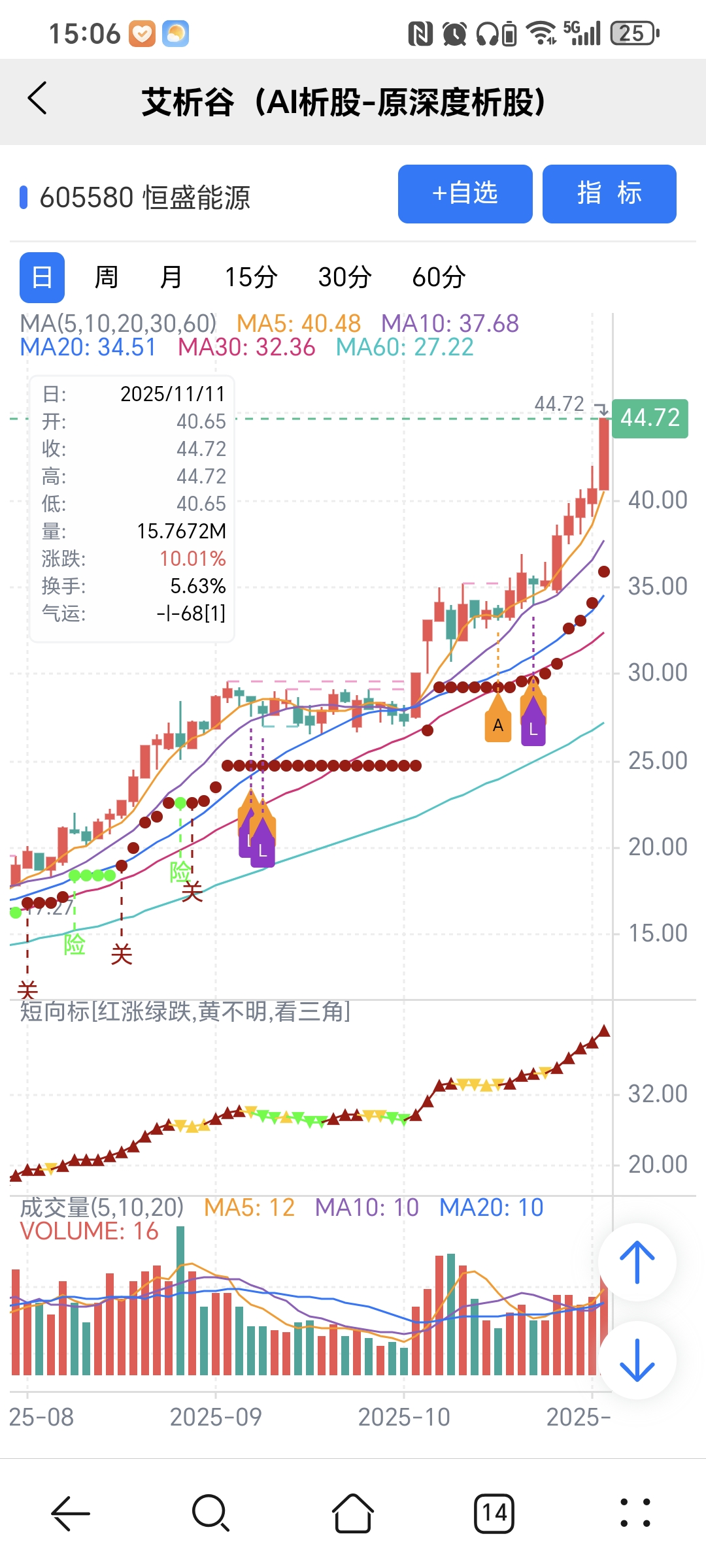 图中A、L 关注标记是对应AI选股模型当天下午2点多给出。