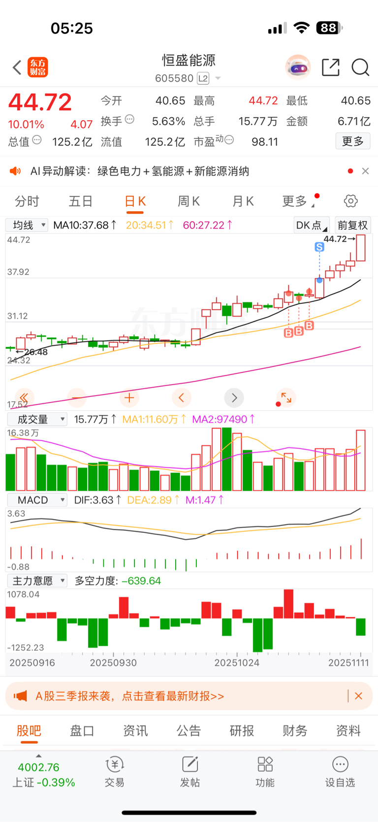 $恒盛能源(SH605580)$ 我等你回十日线你不回来