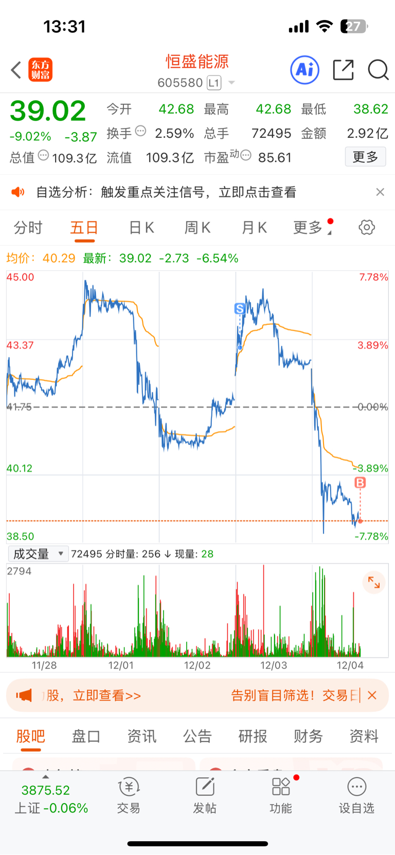 温馨提示: 1.根据《证券法》规定,禁止编造、传播虚假信息或者误导性信息,扰乱证券市场;2.用户在本社区发表的所有资料、言论等仅代表个人观点,与本网站立场无关,不对您构成任何投资建议。用户应基于自己的独立判断,自行决定证券投资并承担相应风险。《东方财富社区管理规定》