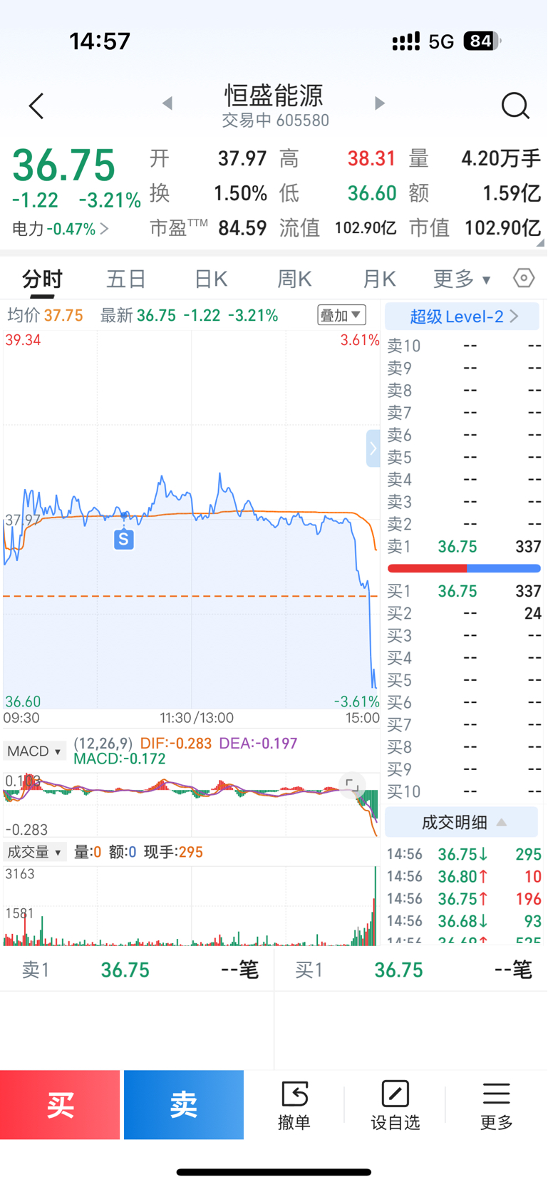 $恒盛能源(SH605580)$ 幸亏早上卖了,不然完蛋了
