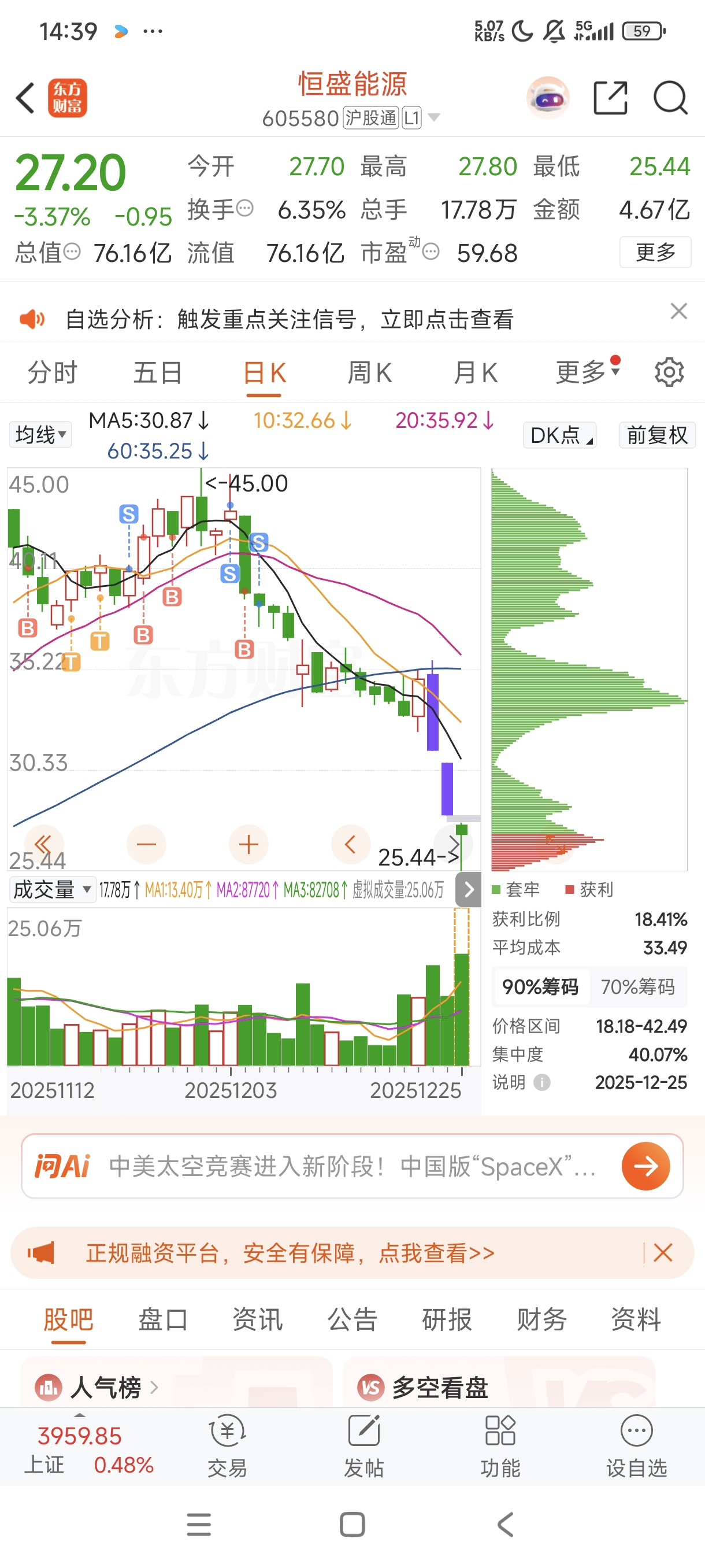 $恒盛能源(SH605580)$ 做了几次没挣到钱,躲过大劫
