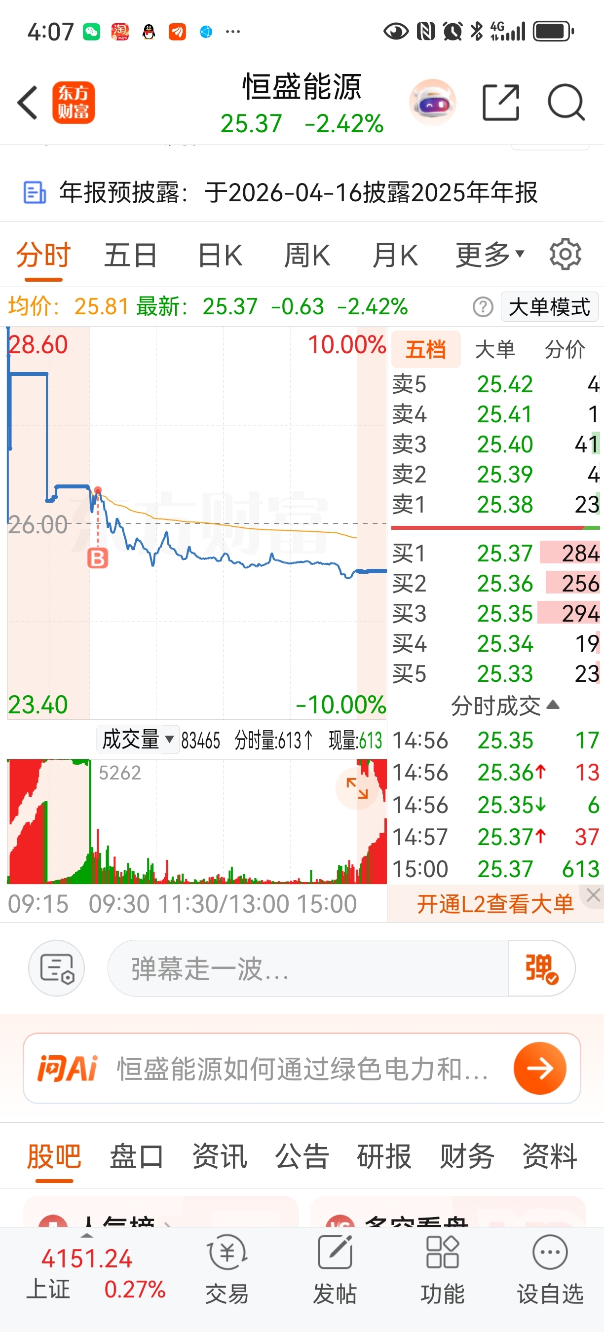 $恒盛能源(SH605580)$ 从鹿山亏了15.5个点过来,今天刚好你帮我凑了20