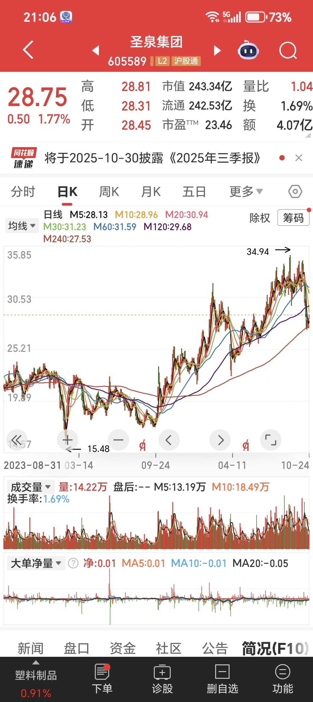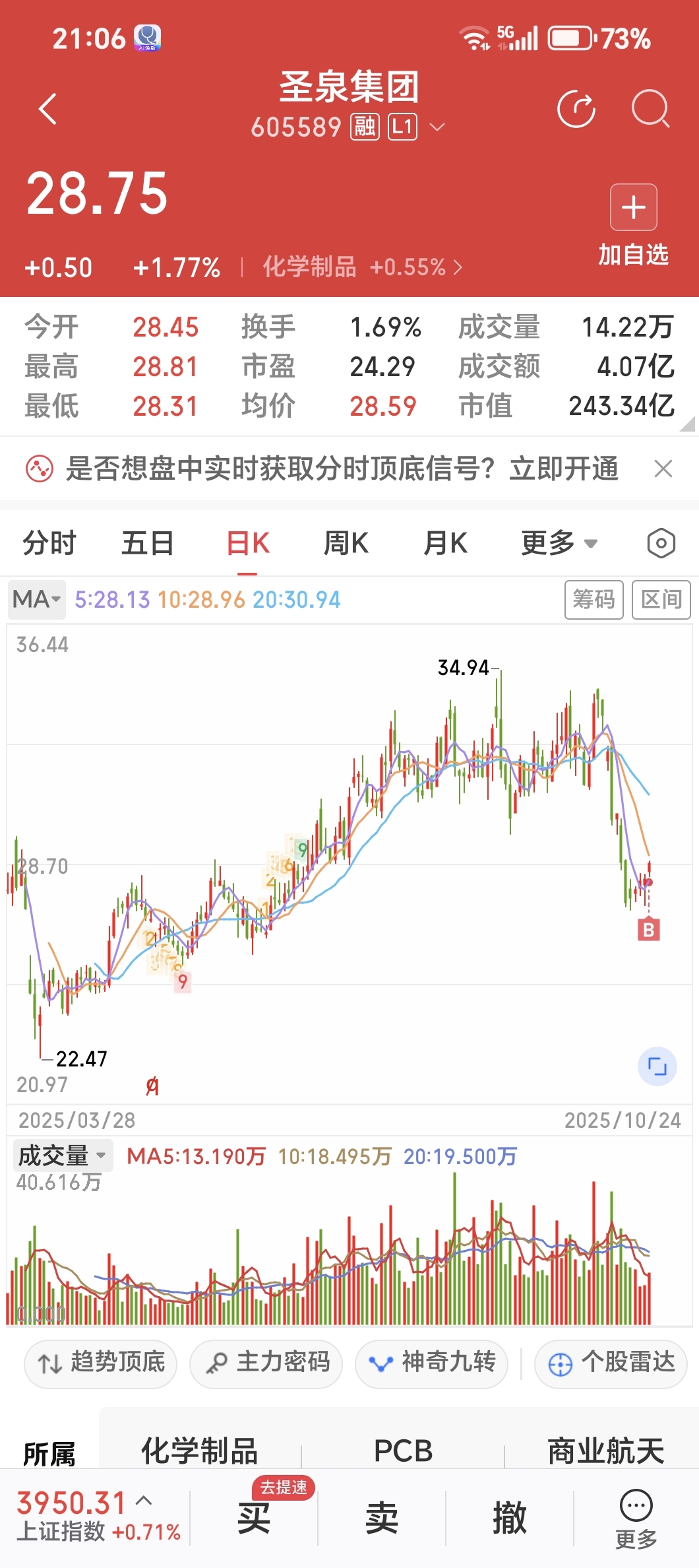 $圣泉集团(SH605589)$ 少有的优质股,还给你打到年线位置,这不是机会吗?这种股,就是机构报团手法,震荡慢牛行情,低点敢于买进,高点舍得卖出,波段操作,与庄共舞。
