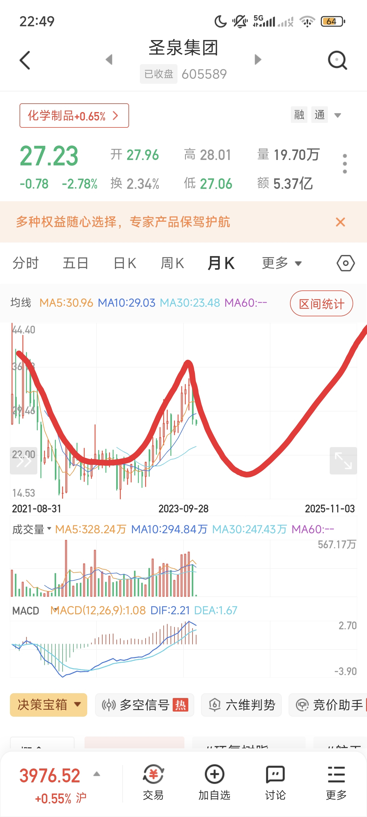 $圣泉集团(SH605589)$ 我帮主力画好图了,百分之百是这个走势