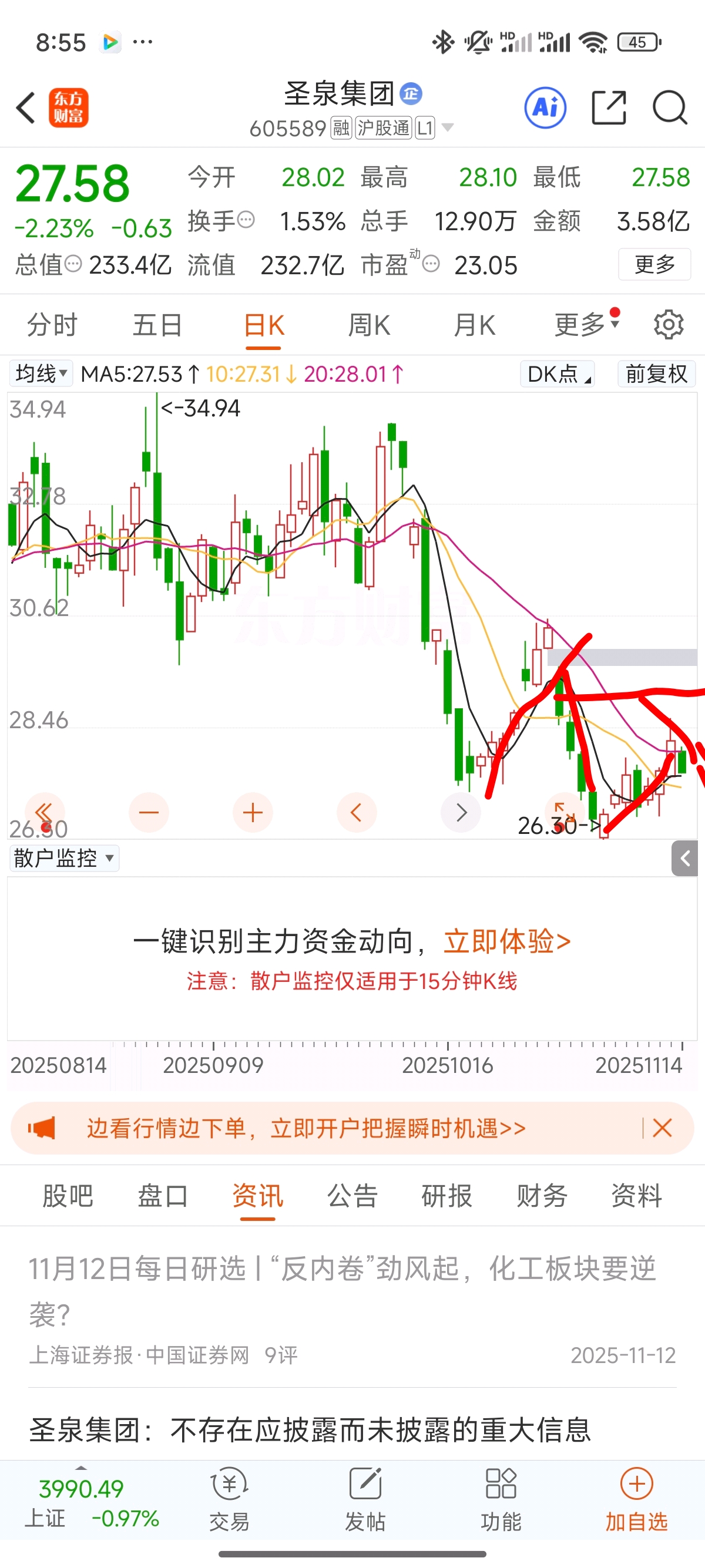 $圣泉集团(SH605589)$ 股神给宝子们画根线