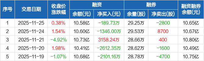 圣泉集团:融资净偿还189.73万元,融资余额10.58亿元(11-25)