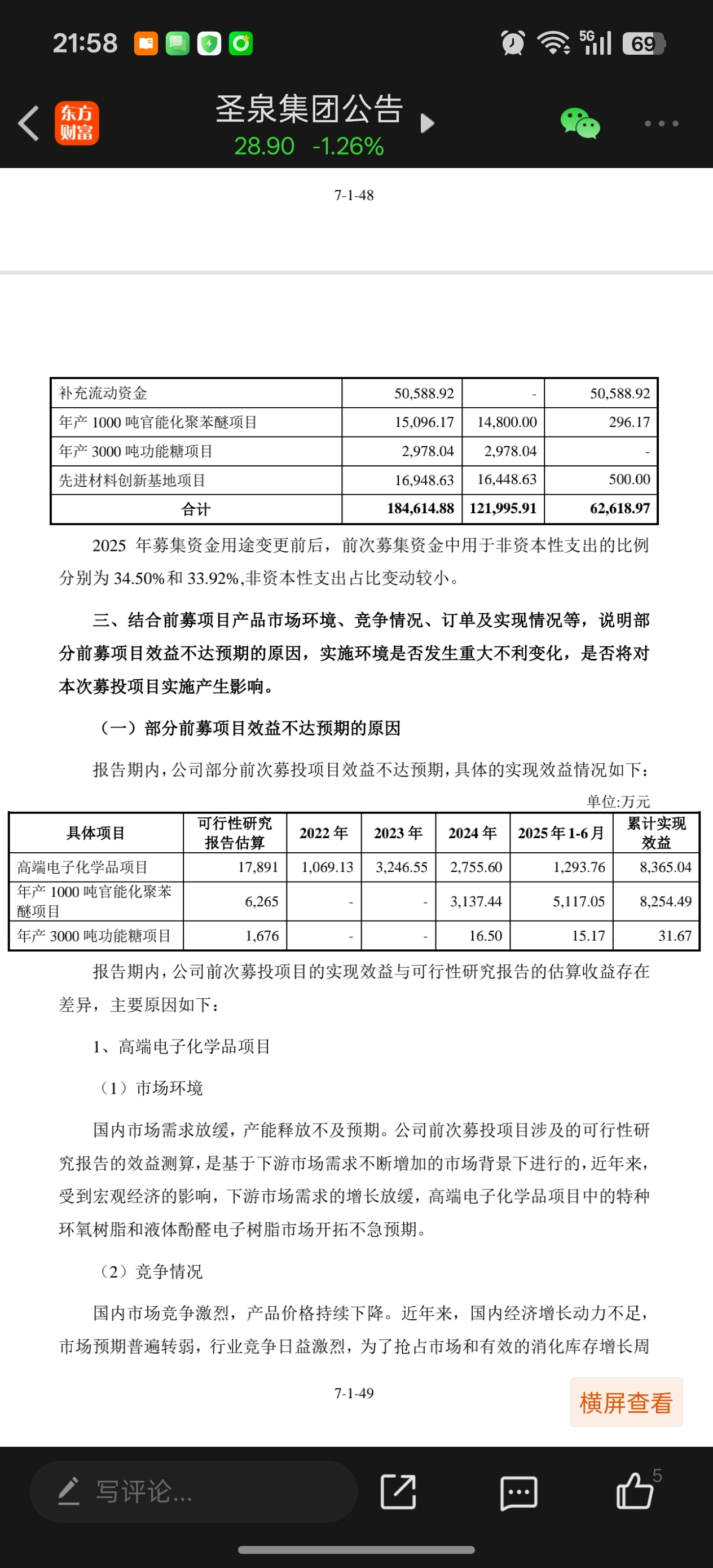 $圣泉集团(SH605589)$ 圣泉今年的利润增长是从哪些项目来的呢?几个募资项目都没产生多少利润。ppo今年1到6月新增利润5000万,其他还有哪些地方创造了新增利润呢?