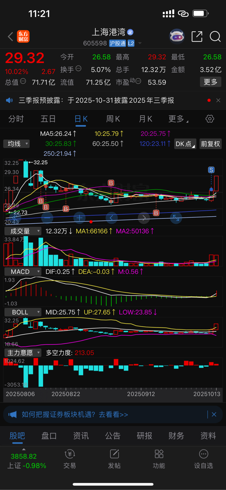 $上海港湾(SH605598)$ 反大盘的家伙,操作严重失败