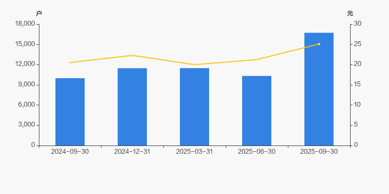 2024年9月30日至今,公司股东户数显著大幅增长,区间涨幅达67.44%。2024年9月30日至2025年9月30日区间股价上涨22.29%。