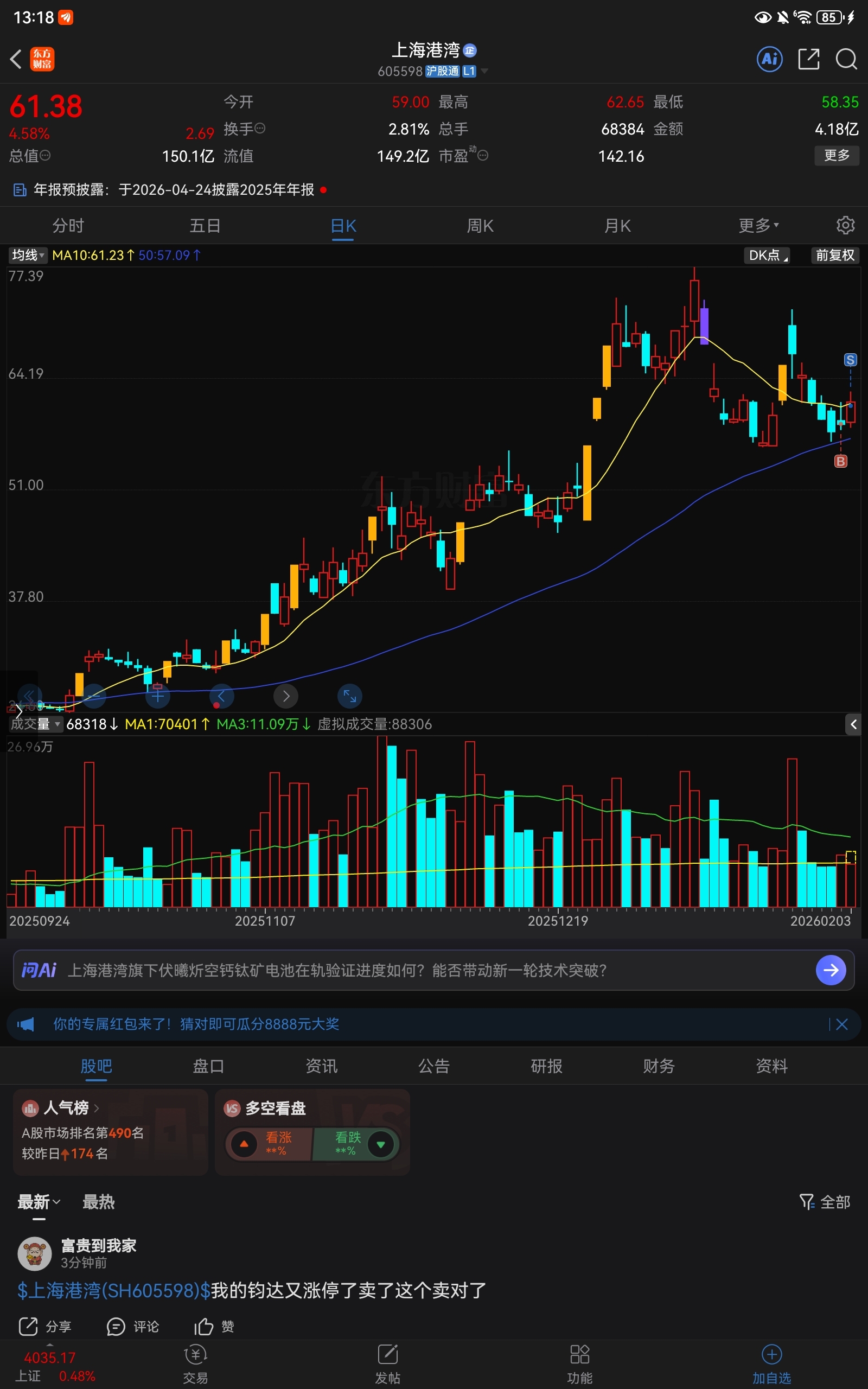 $上海港湾(SH605598)$ 可以拿一下,没耐心