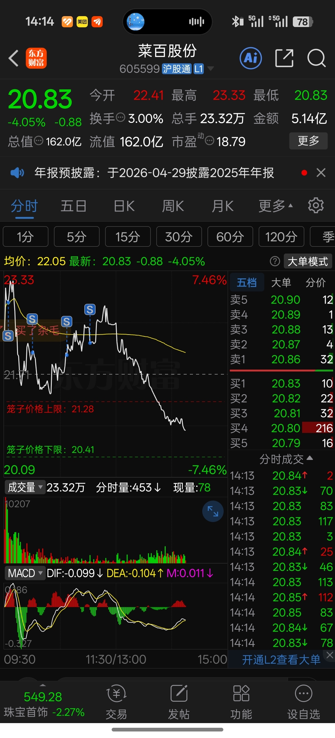 $菜百股份(SH605599)$ 幸亏跑得快,留了100股