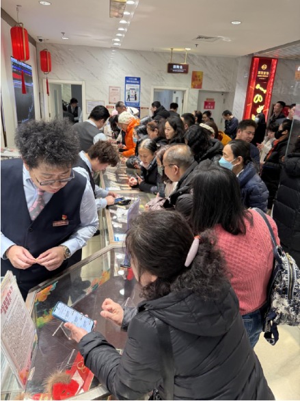 据记者观察,排队的人群涵盖了不同年龄段,既有经验丰富的资深投资者,也有初次参与黄金回购的普通市民。他们相互交流投资心得,密切关注实时金价走势,脸上洋溢着期待与兴奋。