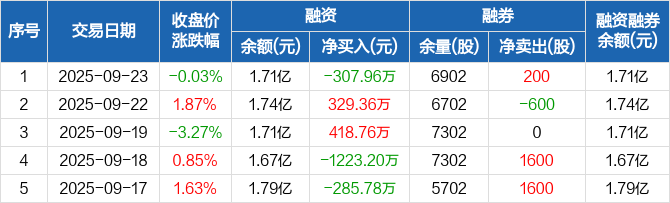 华兴源创:融资净偿还307.96万元,融资余额1.71亿元(09-23)