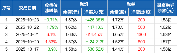 华兴源创:融资净偿还426.38万元,融资余额1.57亿元(10-23)
