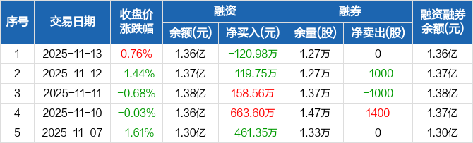 华兴源创:融资净偿还120.98万元,融资余额1.36亿元(11-13)
