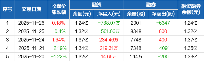 华兴源创:融资余额1.24亿元,创近一年新低(11-26)