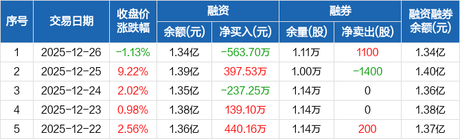 华兴源创:融资净偿还563.7万元,融资余额1.34亿元(12-26)