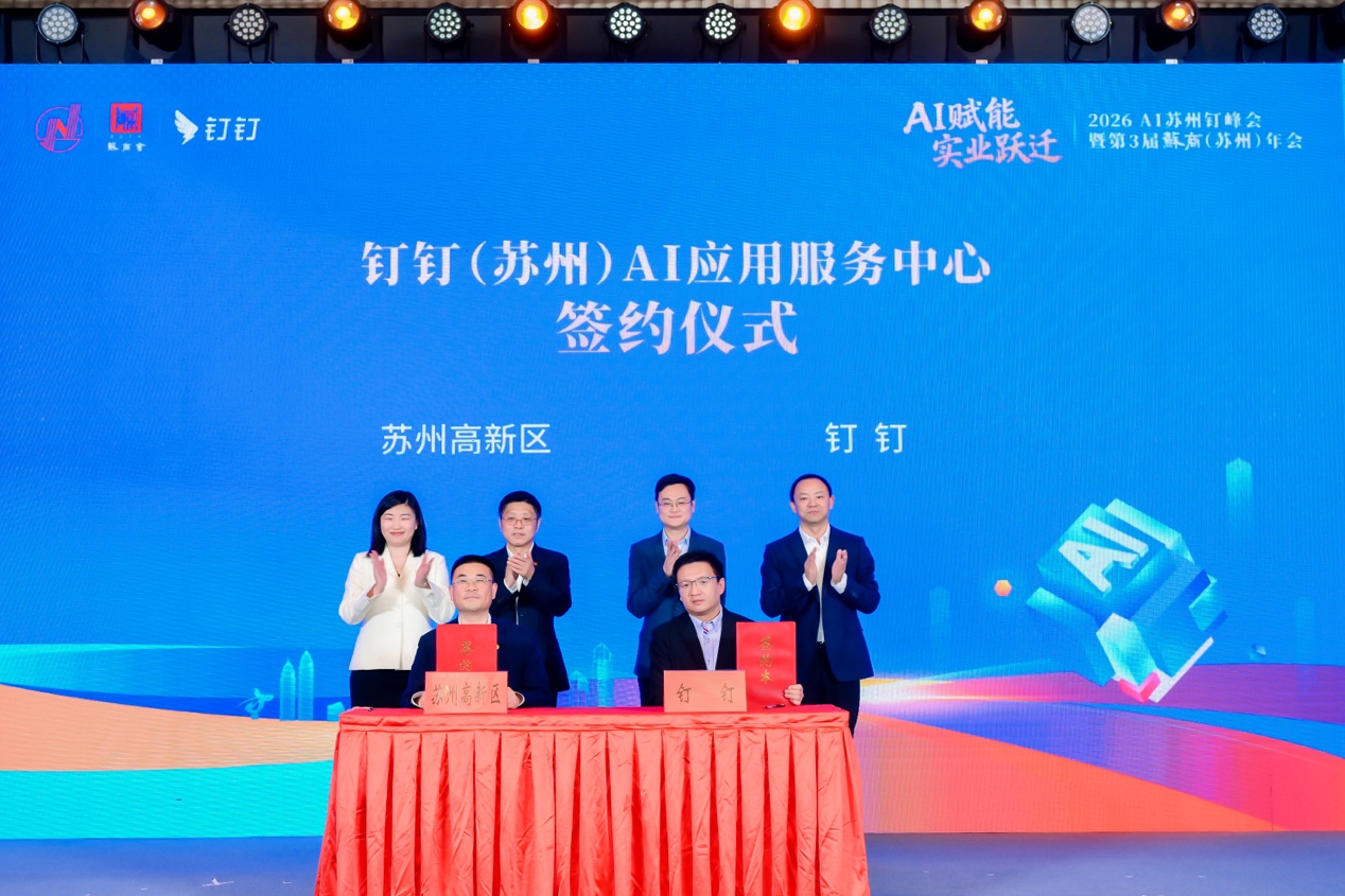 与此同时,全国首个钉钉AI应用服务中心在峰会现场签约落地苏州高新区,将助力区域加速培育OPC创新创业生态,构建更有特色、更具竞争力的“人工智能+”产业生态体系。
