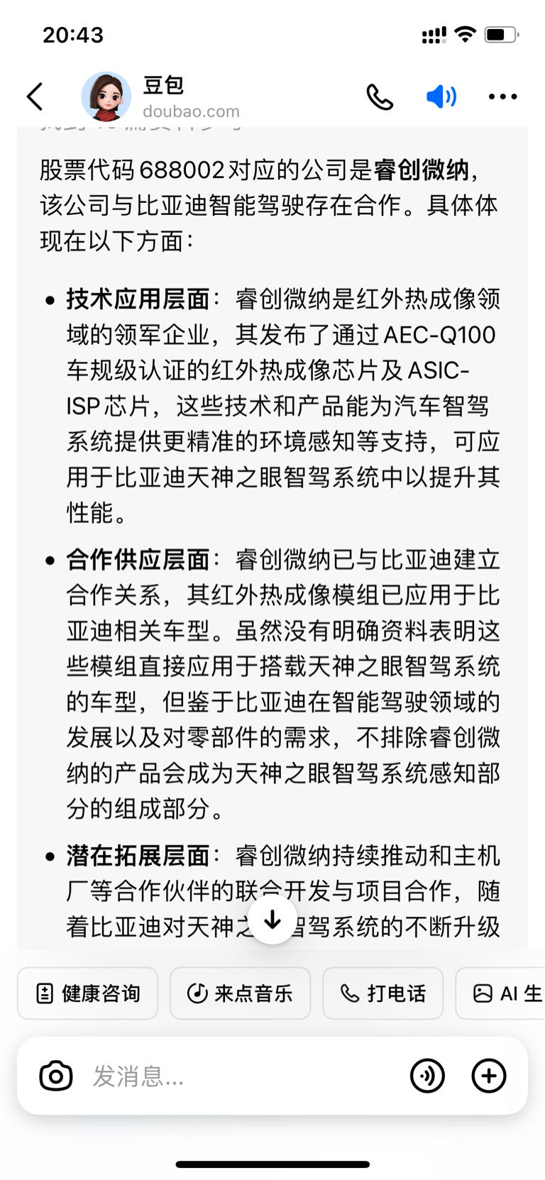 $睿创微纳(SH688002)$ 豆包搜了一下