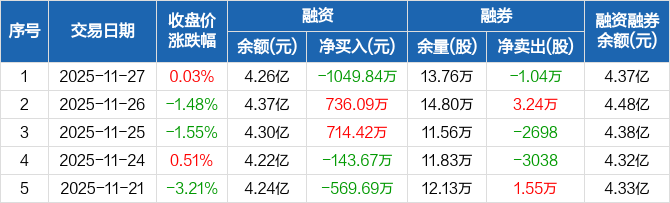 睿创微纳:融资净偿还1049.84万元,融资余额4.26亿元(11-27)