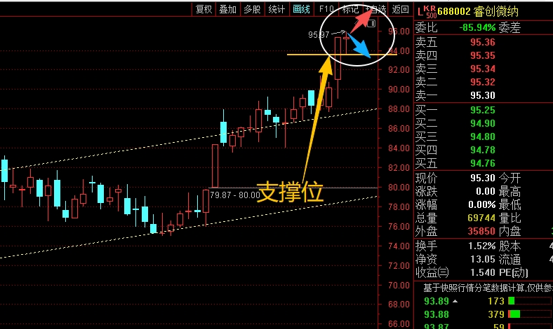 $睿创微纳(SH688002)$ 中期趋势非常强,不断的震荡走高,没有明显的回落走势,短线这里还在加速,重点看脚底横线支撑位的得失,能稳住就没问题,继续震荡走高,但有效跌破就要注意短线的回落风险,控制仓位应对。#炒股日记# #周度策略#