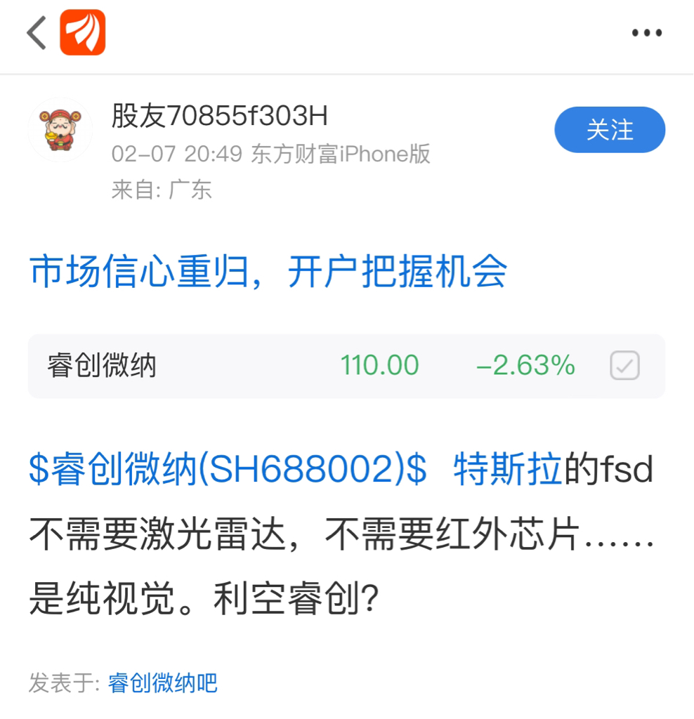 特斯拉FSD纯视觉方案,还没获准进入中国市场,也拿出来大肆渲染——利空睿创!难道中国本土自驾方案就比人家差吗?再说,红外夜视成像本身就是一种视觉方案,是对现有不同技术方案自驾系统的补充与完善!实在拿不出东西唱空睿创了是吧?