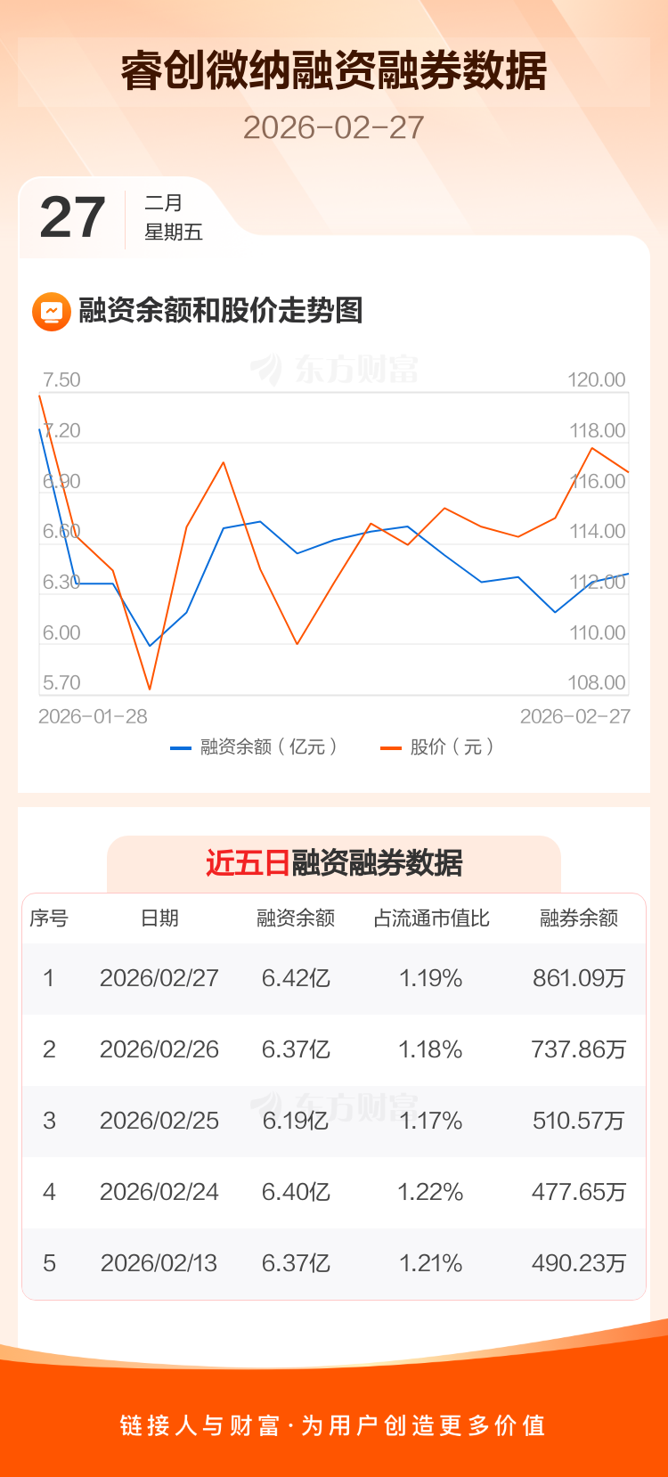 交易所最新数据显示,睿创微纳于2026年2月27日获融资买入4723.67万元,融资偿还4231.10万元,当日融资净买入492.57万元。目前,该股融资余额6.42亿,占流通市值比例为1.19%。