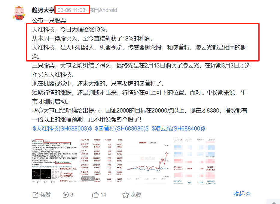 天准科技,股价再次大涨,从3月3日买入,几个交易日时间,持仓浮盈达到28%!