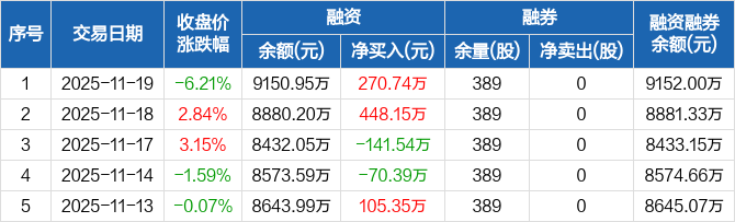 博汇科技:融资净买入270.74万元,融资余额9150.95万元(11-19)