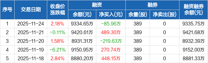 博汇科技:融资净偿还85.96万元,融资余额9334.65万元(11-24)
