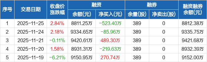 博汇科技:融资净偿还523.4万元,融资余额8811.25万元(11-25)
