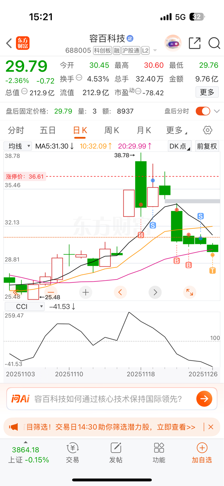 $容百科技(SH688005)$ 妈的利润回吐不说,还闷里面了