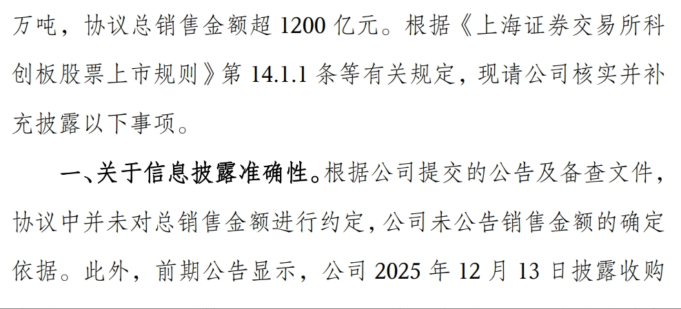 $容百科技(SH688005)$ 大家看看问询函就知道了,双方没有约定价格,1200亿是容百自己说的。