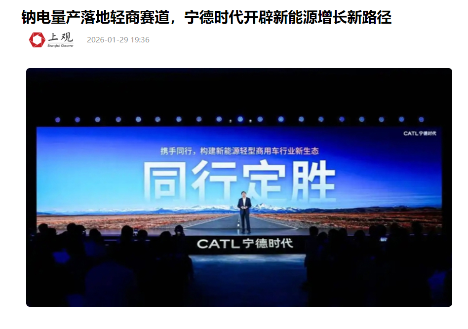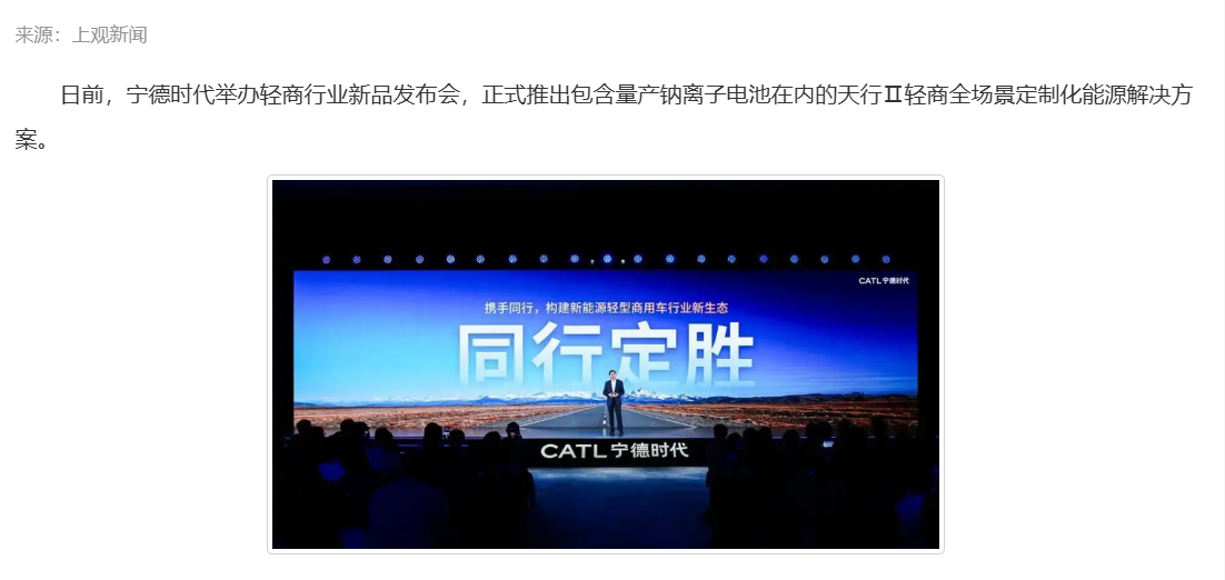 宁德时代资讯今天报道:宁德时代推出钠离子电池