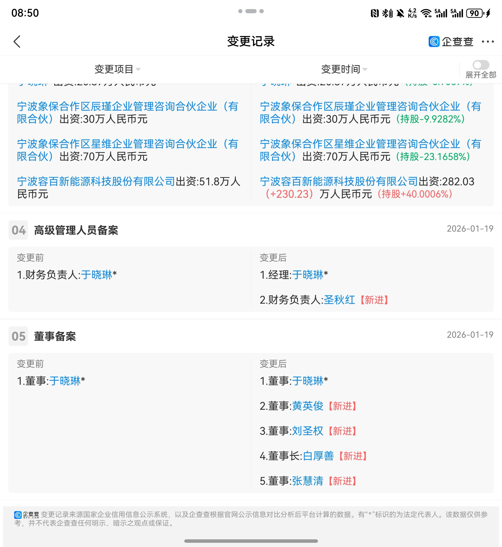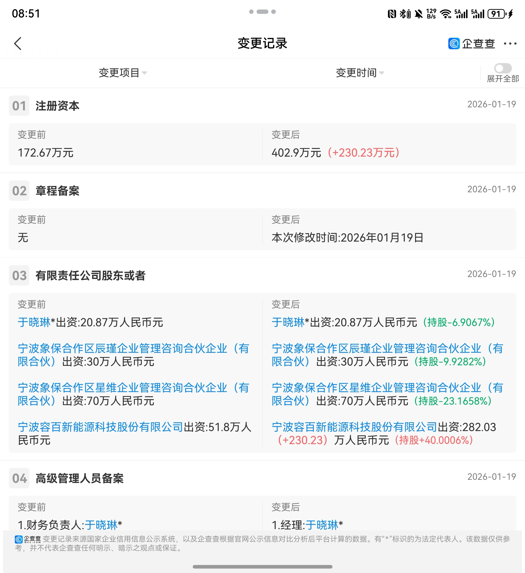 2026-1-19 号 容百科技增持上海量孚到70% 绝对控股,2-6号工商完成。