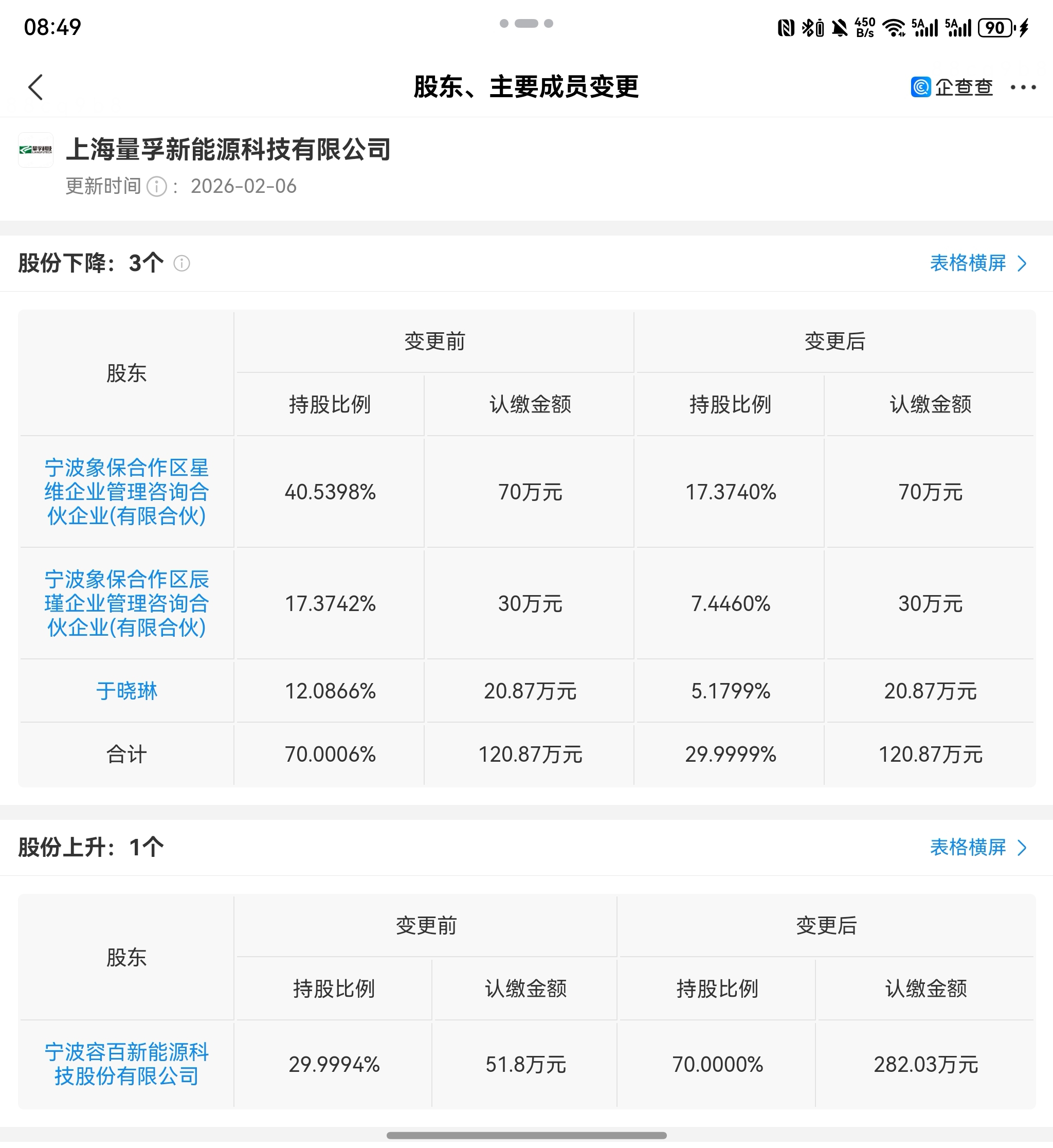 2026-1-19号容百科技增持上海量孚到70%绝对控股,2-6号工商完成。技术