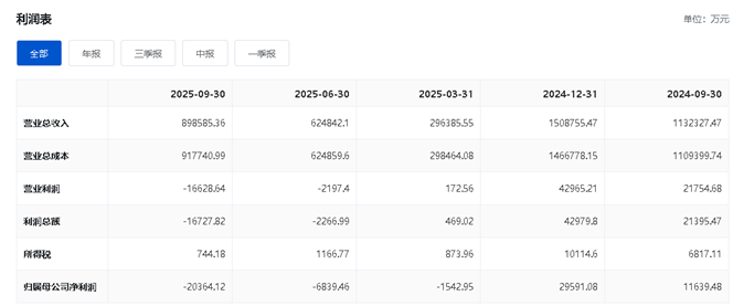 根据容百科技2025年业绩预告,预计2025年第四季度,实现归属于母公司所有者的净利润约3000万元,单季度扭亏为盈。预计2025年年度实现归属于母公司所有者的净利润-1.9亿元到-1.5亿元,实现归属于母公司所有者扣除非经常性损益后的净利润-2.2亿元到-1.8亿元。