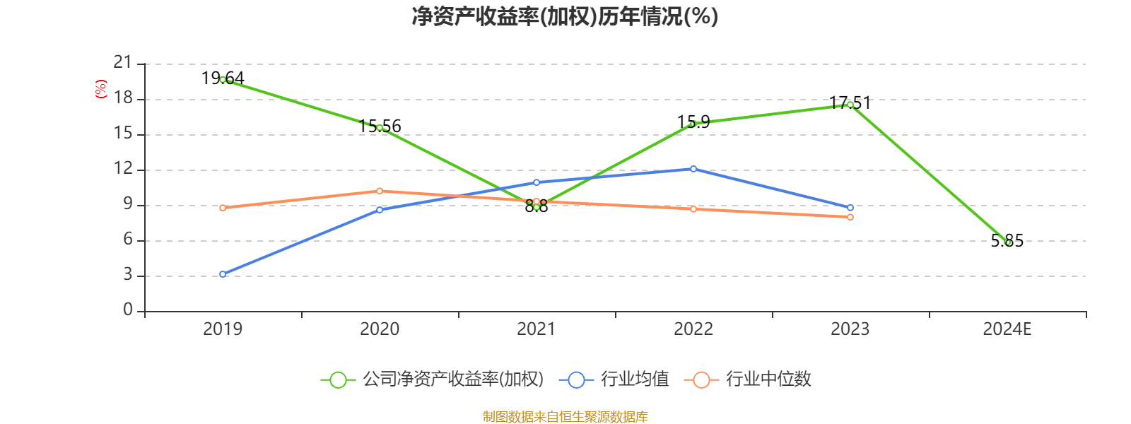数据显示,2024年公司加权平均净资产收益率为5.85%,较上年同期下降11.66个百分点。