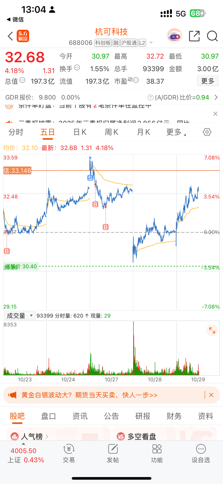 $杭可科技(SH688006)$ 这走势我明天20日线3377卖,套我半个月还能挣钱出来