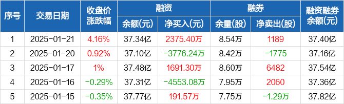 澜起科技:融资净买入2375.4万元,融资余额37.34亿元(01-21)