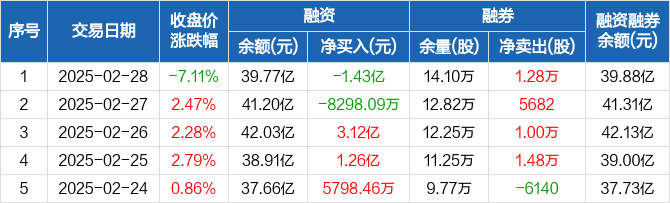澜起科技:融资净偿还1.43亿元,融资余额39.77亿元(02-28)