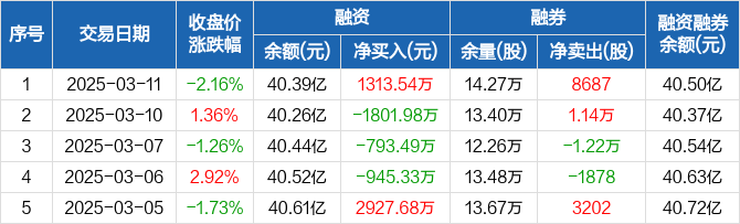 澜起科技:融资净买入1313.54万元,融资余额40.39亿元(03-11)