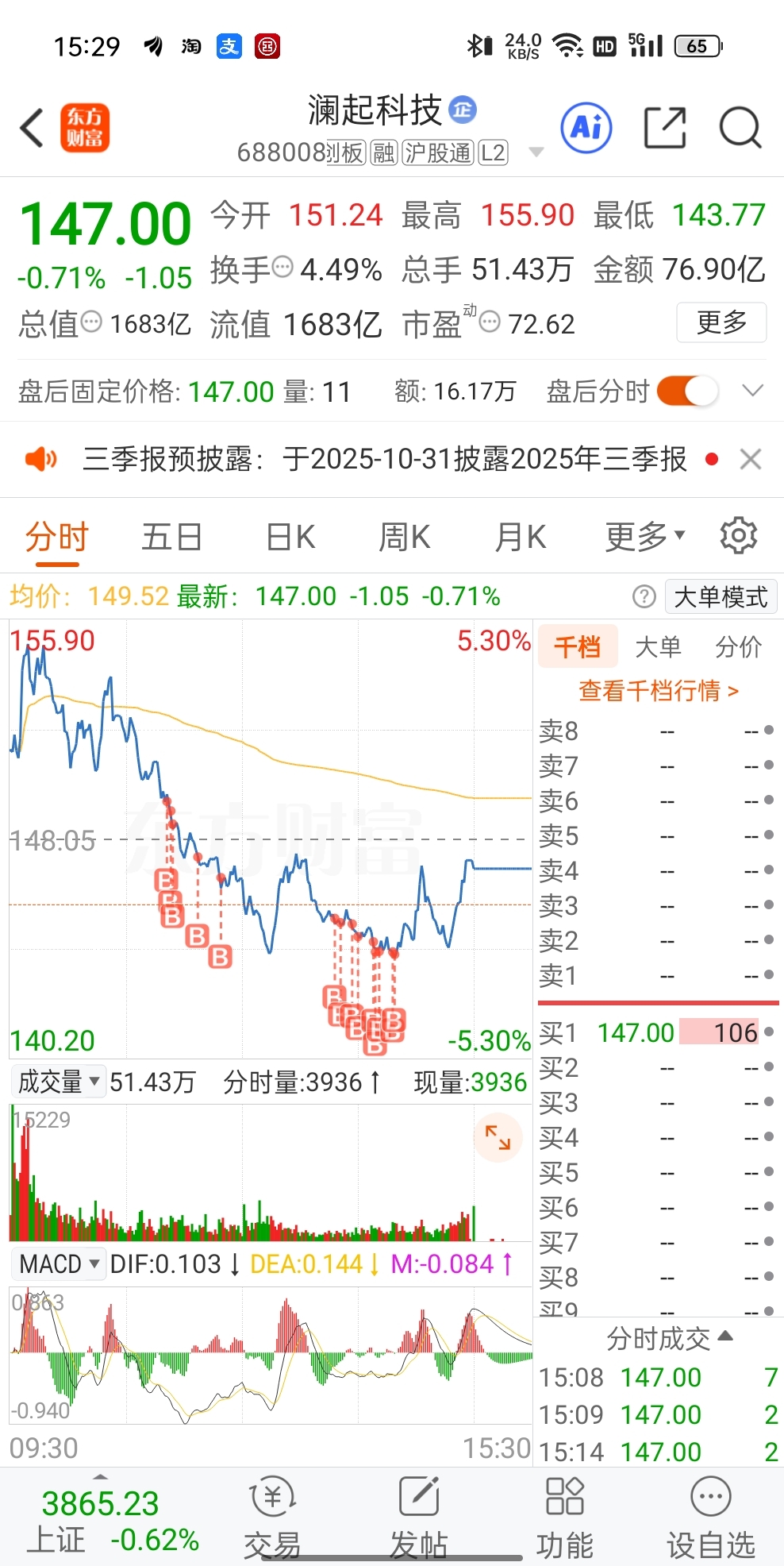 $澜起科技(SH688008)$ 等回落二十日均线好难,忍不住了,今天接回来了三成