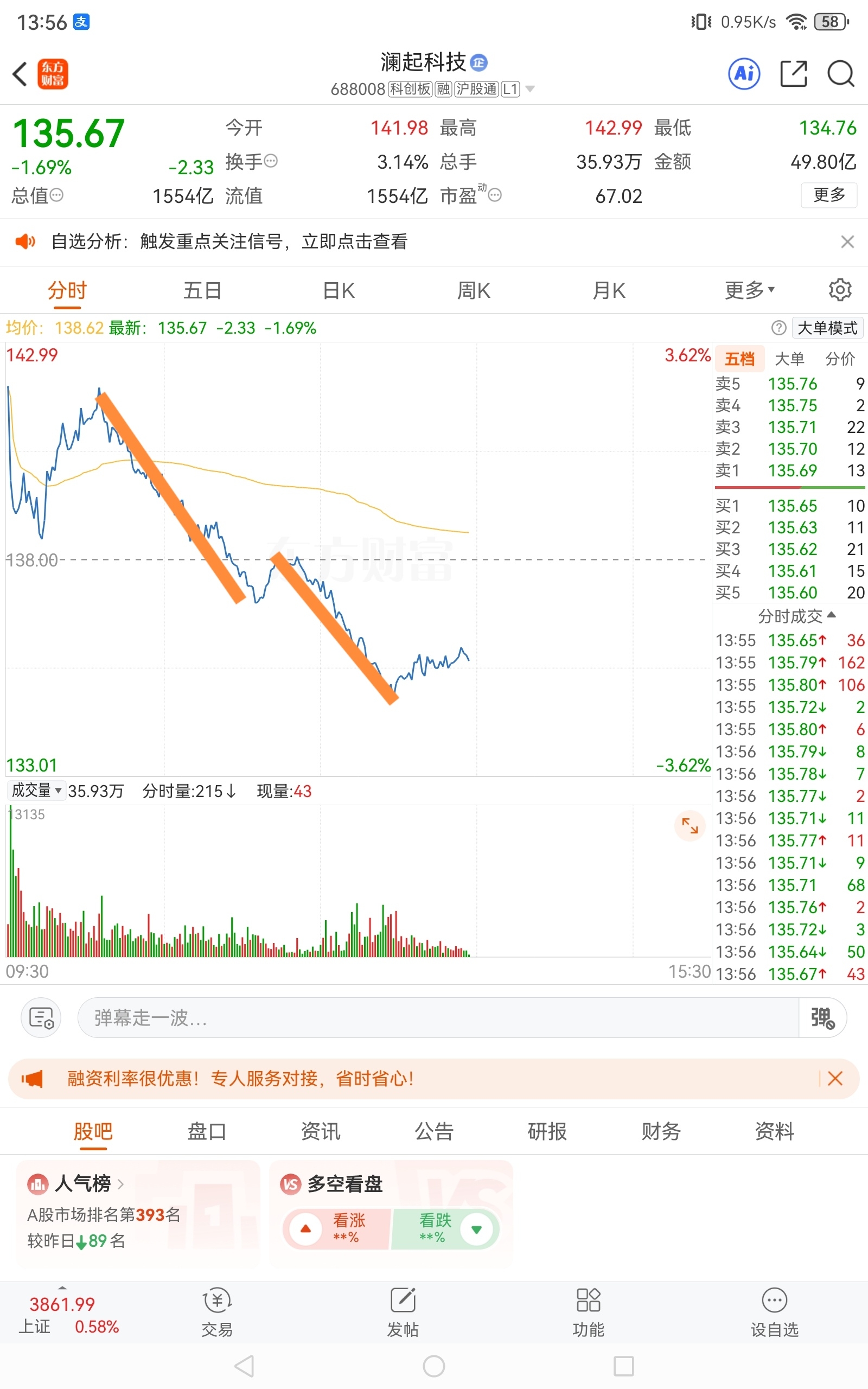 $澜起科技(SH688008)$ 长下跌,短反弹,分时图,啥意思东部?