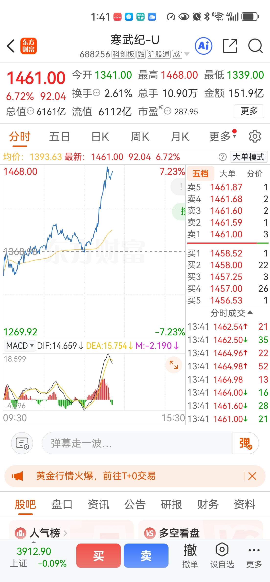 寒武纪超越茅台了,澜起跟屁虫300指日可待。