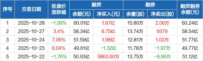 澜起科技:融资余额60.01亿元,创历史新高(10-28)