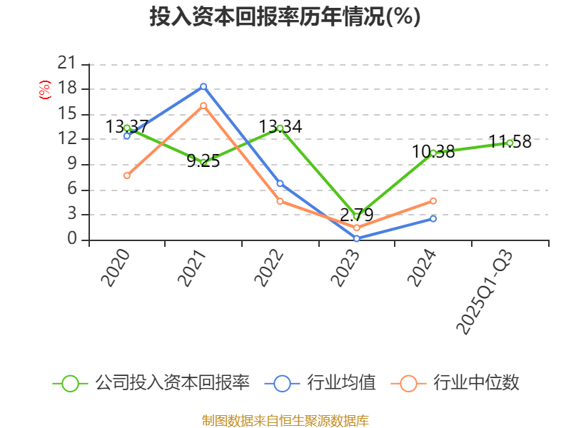 盈利能力方面, 2025年前三季度公司加权平均净资产收益率为13.6%,同比上升4.14个百分点。公司2025年前三季度投入资本回报率为11.58%,较上年同期上升3.92个百分点。