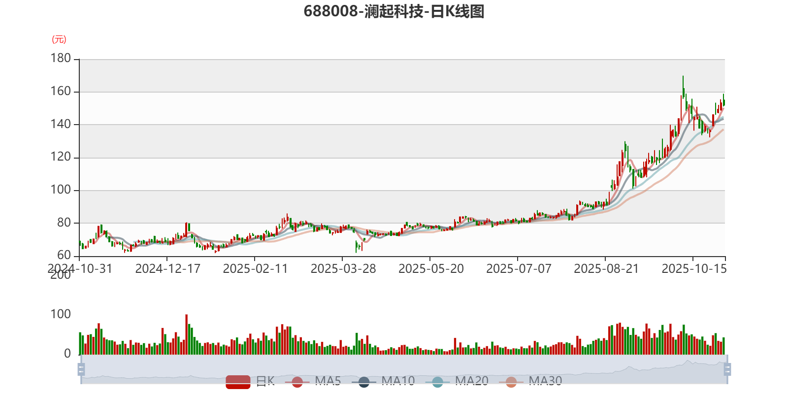 以10月30日收盘价计算,澜起科技目前市盈率(TTM)约为84.25倍,市净率(LF)约14.2倍,市销率(TTM)约33.96倍。