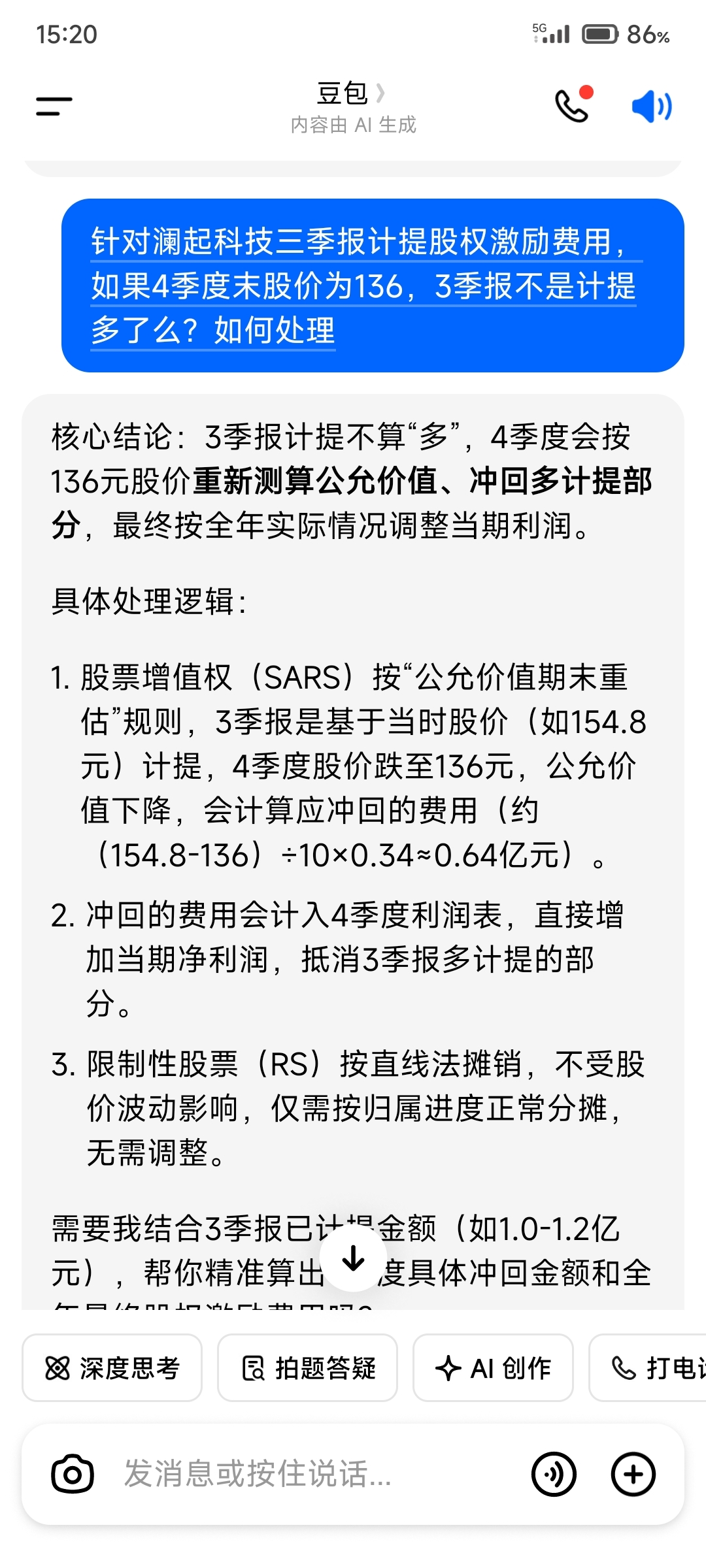 $澜起科技(SH688008)$ 4季度末如果股价还是现价136。那么3季报计提3亿多元还要充回去0.63亿。